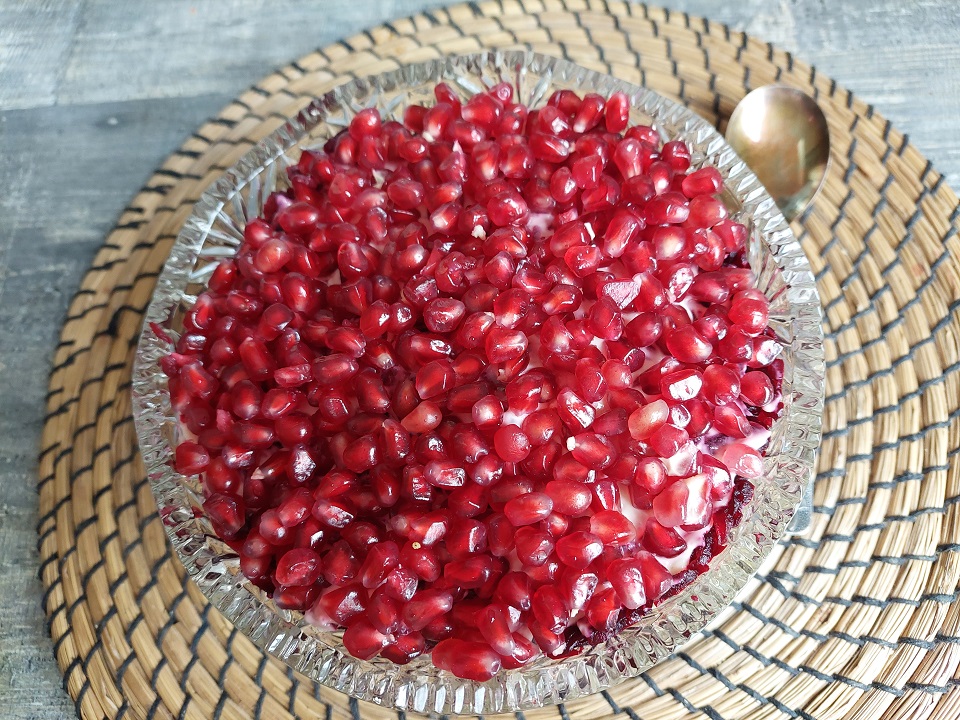 Безупречное сочетание продуктов делают салат питательным, ярким, праздничным. Зерна граната придают особенную нотку свежести ИНГРЕДИЕНТЫ: • Филе курицы - 150 гр • Масло растительное – 3 стл • Лук репчатый – ½ шт (средний) • Лук зеленый – 1 шт • Яйцо варёное – 2 шт • Сыр твёрдый – 80 гр • Соль – 1/3 чл • Майонез с добавлением чеснока – 2 стл • Гранат – ½ шт • Свёкла варёная – ½ шт • Грецкие орехи – 100 гр Филе и репчатый лук мелко порезать, пожарить на растительном масле до готовности. Свёклу, сыр и яйца нашинковать. Зелёный лук мелко порезать. Грецкие орехи порубить ножом. Гранат разобрать на зёрна. Собрать салат слоями, перемазывая майонезом и подсаливая по вкусу. Верхним слоем уложить зёрна граната. Дать настояться в холодильнике. ПРИЯТНОГО АППЕТИТА!!!
