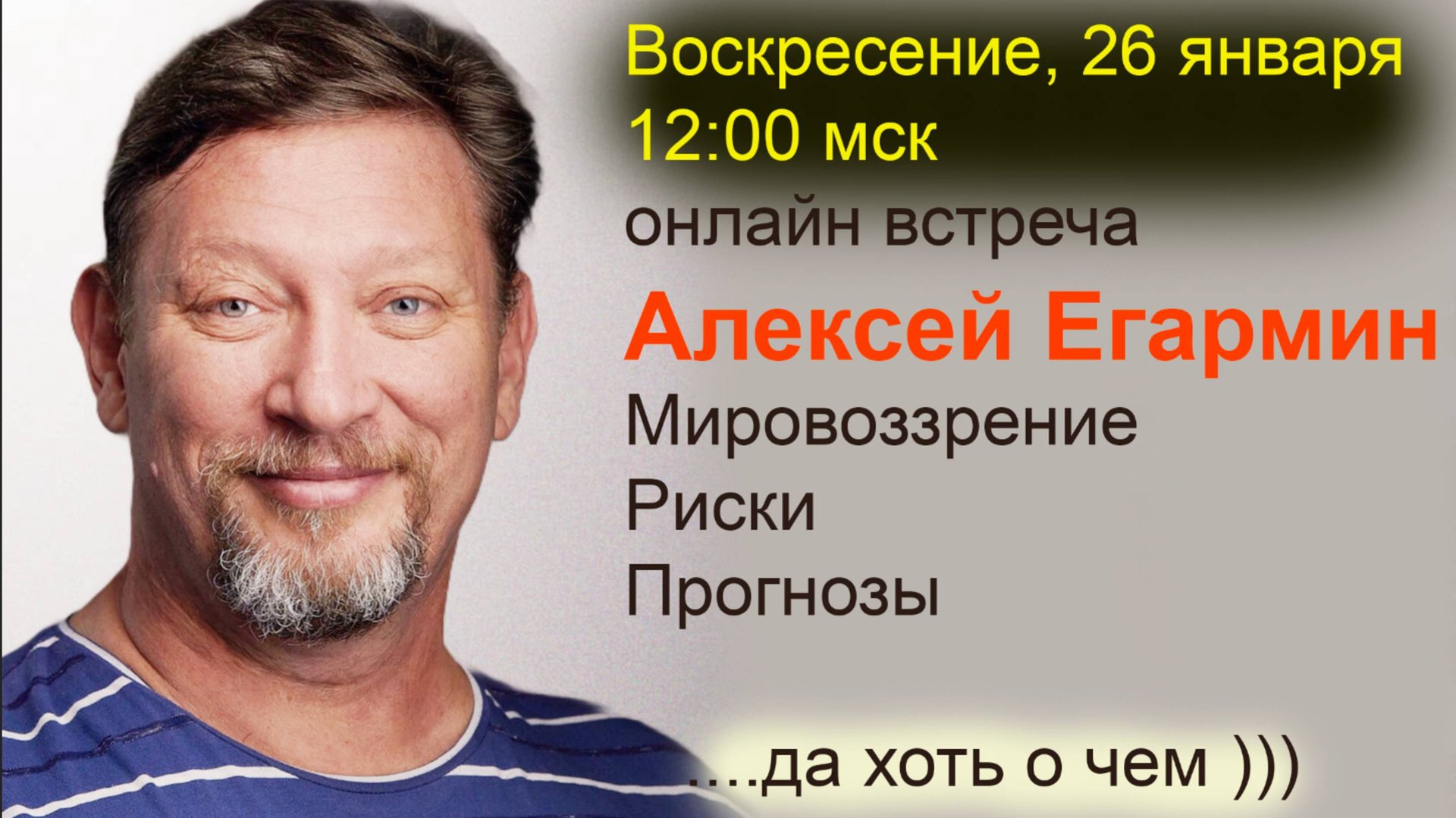 Прогнозы Мировоззрение Встреча с подписчиками. 26.01.2025 г. Тема - Образование. Истинная история человечества. Что происходит сегодня. Чем интересен 2025 год. https://vk.com/alexegarmin Алексей Егармин Инвестор, Наставник, Футуролог Ректор Университета управления финансами https://univeruf.com/ ТГ канал @univeruf Школа РОД для мальчиков и юношей. Среда отцовского воспитания. школарод.рф ТГ канал @schoolrod