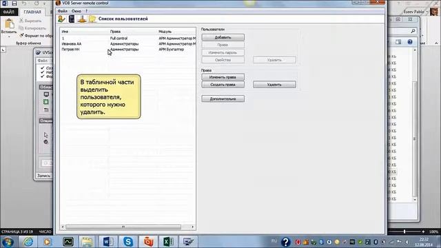 Удаление пользователя на vdb сервере