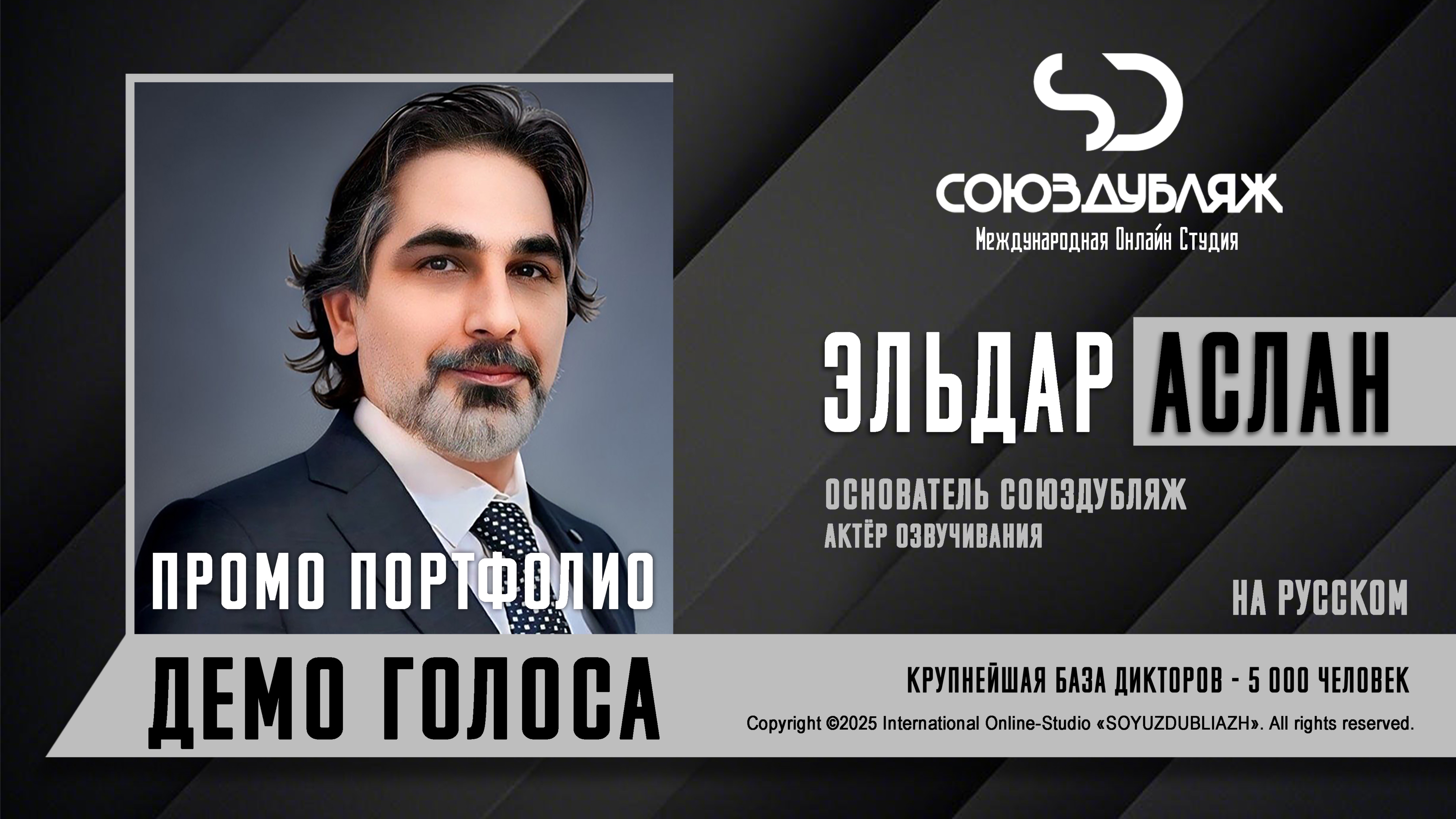 #СоюзДубляж #БазаДикторов #ЭльдарАслан ✔️Эльдар Аслан, диктор-актёр озвучивания. Основатель "СОЮЗДУБЛЯЖ". ▪️Рабочая группа в Телеграм: https://t.me/soyuzdubliazh ▪️Контакт для связи: https://t.me/SoyuzAdmin ▪️Подпишись:https://www.youtube.com/c/SOYUZDUBLIAZH ▪️Сайт: https://www.soyuzdubliazh.com/ Международная Онлайн-Студия "СОЮЗДУБЛЯЖ" - профессиональная озвучка и дубляж. Лучшие голоса для вашей аудиорекламы и видеороликов. База дикторов - 5 000 человек, профессионального уровня на ENG| FR| TR| RU| ISR| AZ| UA| KZ| UZ| языках. Мужские и Женские топовые голоса для озвучки любых проектов, таких как: Рекламы, Презентации, Фильмы, Сериалы, Игры, Мультфильмы, ТВ Шоу, Аудио-видео визитки. ✔️Сотрудничая с нами вы получаете свой проект под ключ, не выходя из дома или офиса. Наша слаженная команда из лучших дикторов, актёров озвучивания, режиссёров и звукорежиссёров в кратчайшие сроки озвучат или отдублируют ваш заказ на профессиональном уровне. Образцы работ нашего портфолио вы сможете посмотреть на канале СОЮЗДУБЛЯЖ. ВНИМАНИЕ: ✔️Мы приглашаем специалистов озвучки к сотрудничеству в нашей команде. Вы можете пройти по ссылке в наш телеграм канал и связаться с Админом для обсуждения. ✔️Всем заказчикам подобных медиа проектов по озвучки и дубляжу фильмов, сериалов, документалок обращаться непосредственно к Админу Телеграм группы СОЮЗДУБЛЯЖ, пройдя по ссылке: Проходи по ссылке: https://t.me/soyuzdubliazh International Online-Studio SOYUZDUDLIAZH presents a highly professional approach in voice-over and dubbing. ▪️Our working group https://t.me/soyuzdubliazh ▪️Chief manager https://t.me/SoyuzAdmin ▪️Follow https://www.youtube.com/c/SOYUZDUDLIAZH ▪️Web: https://www.soyuzdubliazh.com/ We offer You the best Voices for your Audio commercials and Video`s. Our Database contains over 5 000 voices of native speakers and high-class foreign language specialists in ENG| FR| TR| RU| ISR| AZ| UA| KZ| UZ|. Male & Female top level voices for all the variety of dubbing projects such as commercials, presentations, movies, TV-series, video and computer games, cartoons, TV-shows, audio & video portfolio’s – all in one place. As your business partner we guarantee a turn-key project without you leaving your house or office. Our target is to make sure that the dubbing of your project is made as quick as possible by a well-coordinated and professional team of the best speakers, film and sound directors. To whom it may concern! We invite dubbing specialists to join our team. Please contact our manager on Telegram https://t.me/soyuzdubliazh
