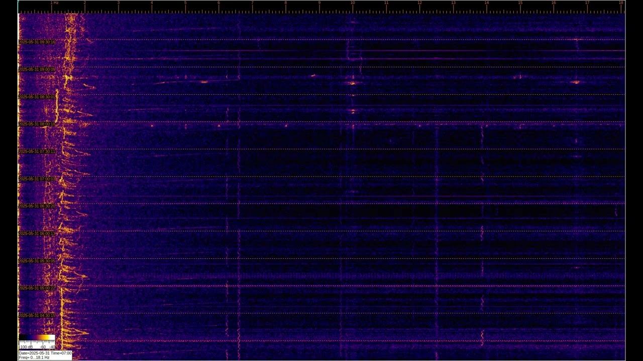 Геомагнитная активность обычно на частотах до 5 Гц и зависит от Солнечной активности. На более высоких частотах спектра могут присутствовать сигналы сверхдальней связи и др. Детали в этих плейлистах: EMF monitor https://youtube.com/playlist?list=PLiRg2YCbXcwn41BHqADKVBep_TgVq6XUN Очень Низкая Частота ~ Very Low Frequency https://youtube.com/playlist?list=PLiRg2YCbXcwnp5DxM4PnSs7k_Rnypaqek SIGNALS IN THE GROUND https://youtube.com/playlist?list=PLiRg2YCbXcwl6f3Bf5arHbGSOCNE5U71O поддержать канал: 8-999-654-93-44