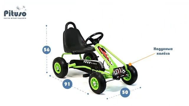 Модель: детский педальный картинг Pituso G201; Тип: детский картинг на педалях, детский транспорт на педалях (веломобиль); Цвета: синий, зеленый; Рама: стальная конструкция; Привод: педальный, с цепной передачей; Тормоз: ручной; Колеса: пневматические (надувные), диаметр около 22 см; Руль: спортивное рулевое колесо, диаметр около 21 см; Сиденье: регулируется в двух положениях (примерно 28 и 31 см до педалей), посадочное место около 31×17 см; Высота от пола до сиденья: около 30 см; Возраст ребенка: для детей старше 3-х лет; Максимальная нагрузка: до 30 кг; Размер изделия: примерно 91×50×56 см; Размер упаковки: около 83×27×53 см; Вес изделия: около 6,6 кг; Вес с упаковкой: примерно 8,1 кг. KID-MAG – интернет-магазин детских товаров (https://kid-mag.ru)