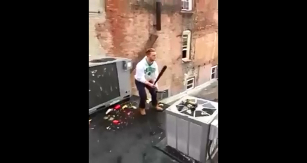 Во время разбитие бутылки битой, парень упал с крыши. #прикол #неудача #фейл #крыша #бутылка #бита