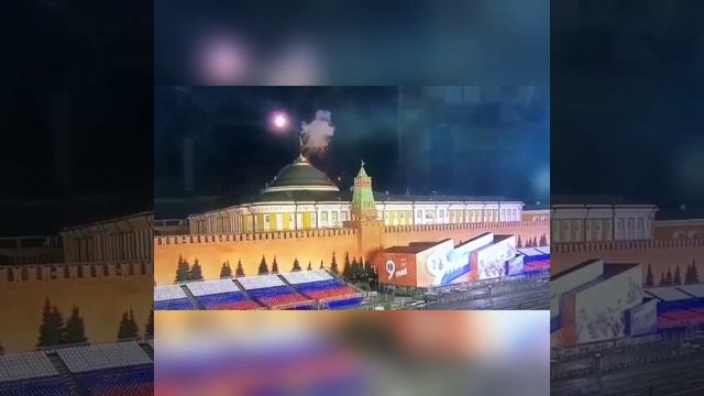 После атаки Дронов загорелся купол Кремля.