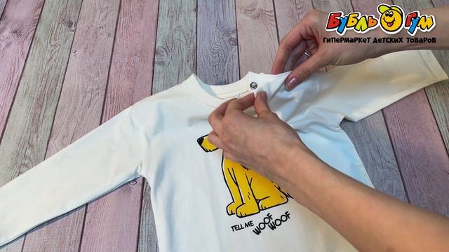 328928 Лонгслив Lanson Kids с принтом собачки и кнопками белый