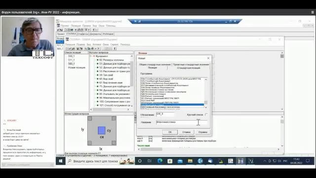 Инж-РУ 2022: Нормативные расчеты грунтов в ПК СТАТИКА (часть 2 работа с ПК СТАТИКА): - столбчатые фундаменты - ленточные фундаменты - плитные фундаменты - свайные фундаменты - расчеты деформаций оснований - подпорные стенки Инж-РУ 2022: Демонстрация новых программ в ПК СТАТИКА: - Построение поверхностей несущей способности стальных сечений (308) - Проверка сечения стального элемента (345) - Расчет железобетонной колонны (проверка) - Расчет по огнестойкости преднапряженной плиты (446)