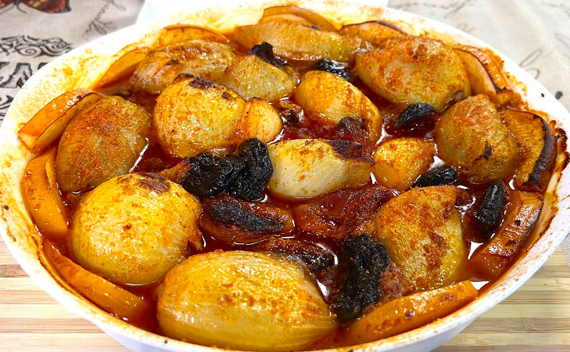 На Новый год земли обетованной … у евреев есть восхитительное праздничное блюдо … Бацалоним … луковые голубцы … Бацал - на иврите … лук! … блюдо имеет изысканный пряно-сладко-кислый вкус … просто и очень вкусно! Лук … удалить корешковую зону … надрезать до половины … и отправить в кипяток на 5 минут … начинка … фарш … рис, сваренный до полуготовности … перец, соль, вода … соус! … масло, парика, чеснок, сахар, сок лимона, соль, перец … фарш завернуть в луковые рубашки … уложить в форму для запекания … переложить дольками айвы, чернослива и кураги … полить соусом … добавить воды и отправить в духовку 180°С 40-60 минут … в процессе приготовления поливать соусом … блюдо имеет восхитительный вид и вкус … положа руку на сердце … это будет ярким украшением праздничного стола! Приятного аппетита!