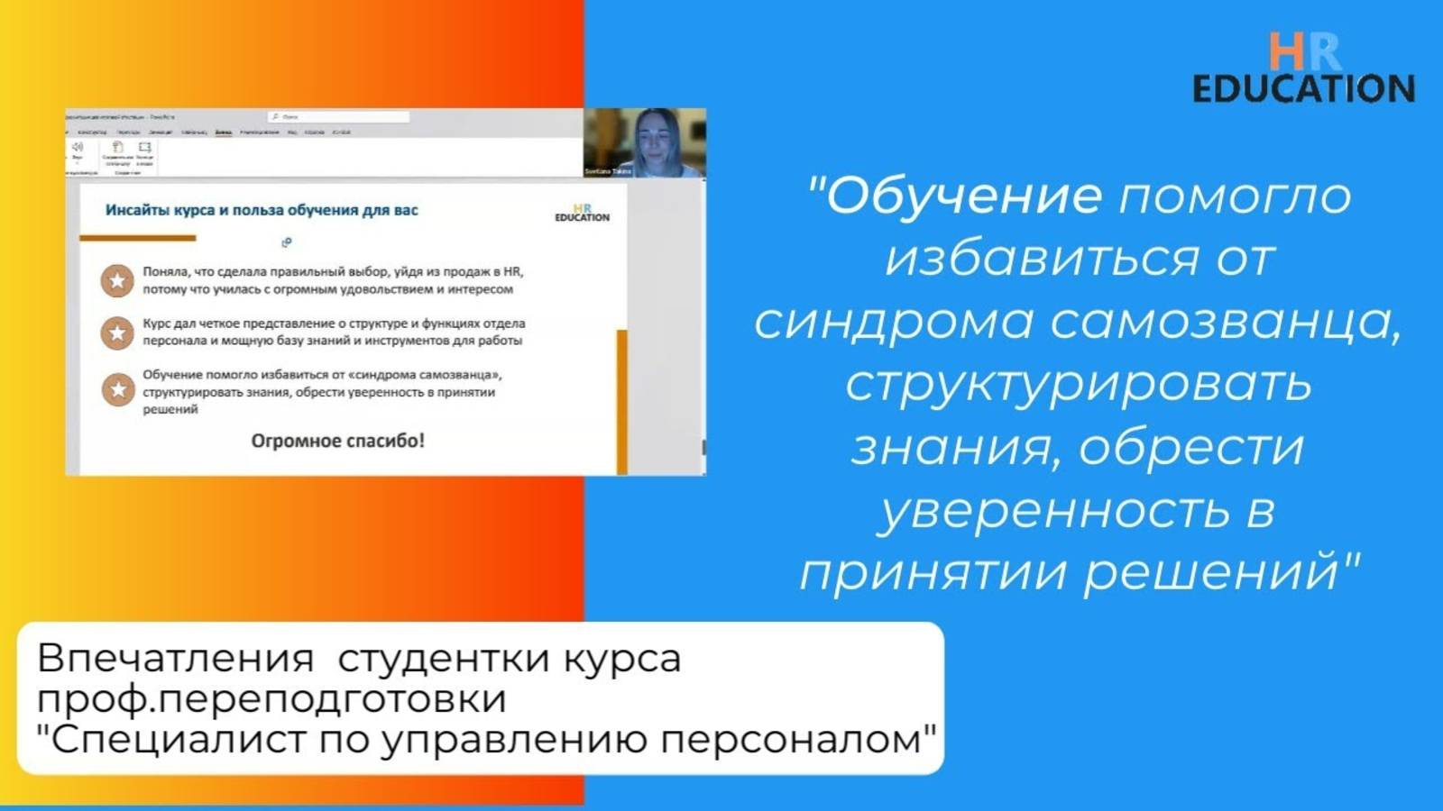Впечатления Такиной Светланы, студентки курса проф.перепод-ки "Специалист по управлению персоналом"