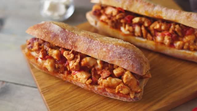 Сэндвич из багета с курицей и моцареллой