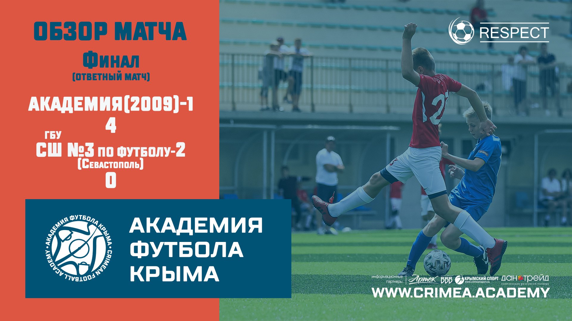 Обзор ответного матча Финала Открытого первенства детско-юношеской футбольной лиги Крыма среди юношей 2009 г.р. (2021/2022): Академия футбола Крыма(2009)-1 - ГБУ СШ№3 по футболу-2 (Севастополь) Наш сайт: https://www.crimea.academy/ Академия футбола Крыма – это большая футбольная семья, которая открыта для общественности и готова к взаимному сотрудничеству, обмену опытом и профессиональному общению. Наша цель – подготовка качественных и конкурентоспособных футболистов с учетом современных требований, а также образованных и всесторонне развитых членов современного общества. Наша приоритетная задача – отбор детей, проявивших выдающиеся способности в области футбола для совершенствования их спортивного мастерства. Команды Академии ориентированы на атакующий и зрелищный футбол, в котором удовольствие получает не только сам игрок, но и зритель. При этом интересы команды не должны идти в ущерб задаче воспитания отдельного футболиста. В основе воспитания юных футболистов в нашей Академии лежит принцип – "подготовка игрока, а не команды". #футбол #спорт #СвернёмГоры #football #soccer #sport