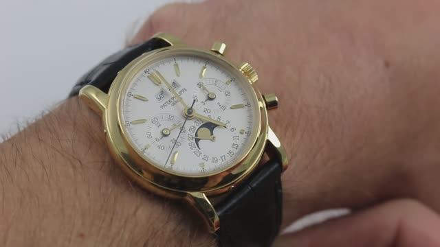 *перевести видео можно в Яндекс браузере Хронограф Patek Philippe с вечным календарем - это часы с ручным заводом. Это третья серия 3970J. Часы были немного уменьшены в размерах, выпускались примерно с 1986 по 2004 год, их диаметр составляет 36 мм, а толщина - 13 мм. Длина часов от выступа до выступа составляет 43 мм. Задняя крышка дисплея немного толще по сравнению с прочными задними стенками других моделей. Смотрите наш полный обзор для получения более подробной информации!