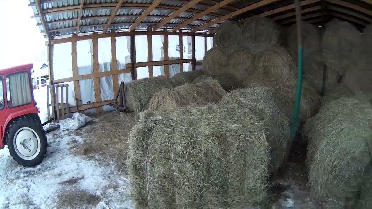 Оттепель к лени. Подвоз сена поближе. Как портятся рулоны снизу в сеновале.