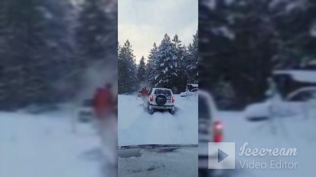 в этом видео на автомобиле с серым капотом установлена резина медведь в размере 31дюйм.естественно она никуда не едет на снегу,тем более её никто не травил по давлению)))и блокировки межколёсные на автомобиле отсутствуют,в дальнейшем будут установлены.
