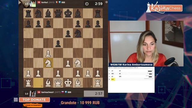 Титульный вторник на chess.com 11 туров 3+1 Поддержать канал: https://www.donationalerts.com/r/karinachess1 Подписаться на мой канал: https://www.youtube.com/channel/UChor8u_hhgrjX2lt0QLzZHA?sub_confirmation=1 Стать спонсором канала: https://www.youtube.com/channel/UChor8u_hhgrjX2lt0QLzZHA/join Рестрим: https://www.twitch.tv/karinachess1 Рада приветствовать Вас на канале женского международного гроссмейстера, международного мастера Карины Амбарцумовой! Я - профессиональная шахматистка и тренер. Здесь вы сможете найти обучающие видеоуроки по шахматам, комментарии турниров, стримы моей игры в блиц шахматы. Подписывайтесь на мои странички в соц.сетях: ВКонтакте: https://vk.com/karinachessclub Twitch: https://www.twitch.tv/karinachess1 Почта для связи: karinachess@mail.ru Поддержать канал: https://www.donationalerts.com/r/karinachess1 Мой сайт: http://chesscoach.ru/