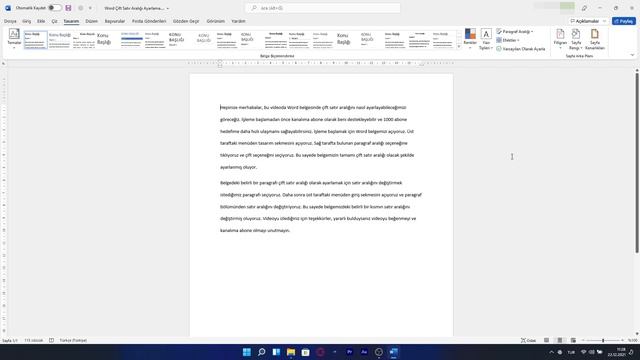 Bu videoda Word belgesinde satır aralığını nasıl ayarlayabileceğiniz gösterilmektedir. Videodaki adımları uygulayarak hem belgenin tamamını hem de belirli bir kısmının satır aralığını değiştirebilirsiniz. Videoyu izlediğiniz için teşekkürler, yararlı bulduysanız videoyu beğenmeyi ve kanala abone olmayı unutmayın. #word