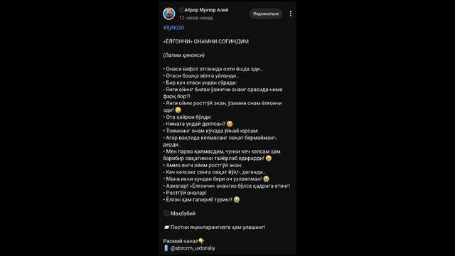 #XUJUMIY 🖥Yaqinlaringizga ham ulashing! ©Rasmiy kanal👇 🌟 t.me//AbrorMuxtorAliy ⬇️Kanalga azo boʻlishni unutmang! 🔗 https://t.me/xu1umiy 💬Takif va munozaralar uchun 🔗 t.me//ErkinEtiqod 🌐Bizni boshqa ijtimoiy tarmoqlardaham kuzating! 🔗https://share.upscrolled.com/en/post/32af64d0-fd03-11f0-8080-800135fa329e/ 🔗https://rutube.ru/channel/26864671 🔗http://tiktok.com/@erkinetiqod1221 🔗https://vkvideo.ru/@club233736482