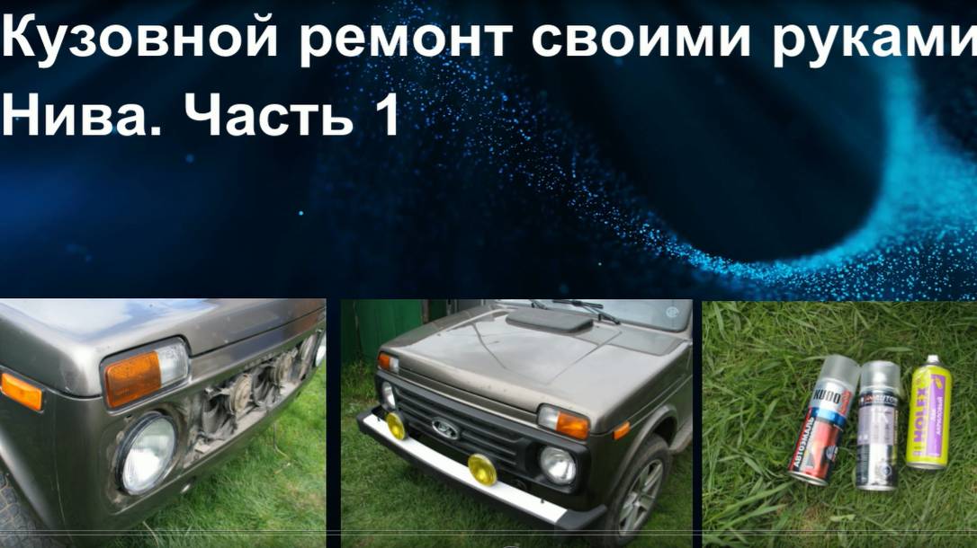 Почти год назад я выкладывал видео о коррозии кузова Нивы. В том видео я рассказывал от том, что от коррозии страдает панель передка, к которой крепится пластиковая решетка радиатора, ну, и передняя кромка капота страдает от сколов. При этом эти негативные процессы наиболее наглядно проявлялись после зимы. Сколы и ржавчины под ними я пытался лечить местными точечными подкрашиваниями, но выглядело это мягко говоря хреново. В прошлогоднем видео я говорил, что если так пойдет, то придется отдать на перекрас переднюю часть машины. И вот после очередной зимы, 5-ой в жизни моей Нивы, которая к этому времени пробежала 156 тыс. км, и поглядев на состояние передка машины меня посетила авантюрная идея попытаться восстановить кузов своими силами, не прибегая к услугам мастеров. Вот как выглядит эта часть кузова. Сколов стало больше, часть тех, что были замазаны в прошлые года вспучились и пустили ржавчину. Сильнее всего пострадала панель передка. В прошлом году не было вот такого безобразия. Сколы я подкрашивал 2-3 года назад и вот что здесь творится сейчас. Комментарии, как говорится, излишние. Время не щадит никого и ничего. Как показывает практика «лицевая часть» Нивы особенно подвержено влиянию времени. Ржавчина пошла и по низу передка в той части, что скрыта за бампером. В прошлом году здесь не было даже намека на коррозию и вот за зиму все зацвело буйным ржавым цветом. Кроме того каким-то непостижимым образом треснула пластиковая решетка радиатора плюс потрескался дефлектор правого надфарника и стала внутрь плафона затекать вода. Кроме того. ржавчиной покрылись очки фар. Но здесь я сам виноват. В прошлом году эти очки я подкрашивал, но не покрыл краску сверху лаком и вот результат. Но это ж опыт, как говорится учтем на будущее. Плафоны, решетку радиатора я уже заказал, очки фар перекрашу. Но сейчас я хочу попробовать перекрасить панель передка. Никогда не занимался таким делом, решил поучиться на детали, которые меньше всего видно. Она скрыта за решеткой и хорошо подходит для такого обучения. Почитал интернет, посмотрел Ютуб и приобрел такой вот набор. преобразователь ржавичны Аэрозольный Эпоксидный грунт, Краска кориандр тоже в аэрозольном баллончике