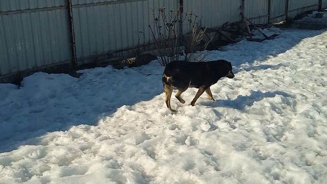 Весна. Солнце припекает сильнее. Наши собаки купаются в тающем снегу.