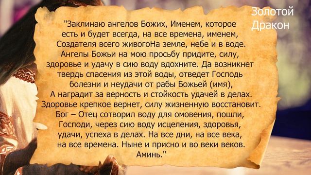 В этом видео я расскажу, как на Крещение вымолить себе здоровье. И какие слова нужно сказать на новую кружку, чтобы привлечь удачу на весь год. Дорогие мои зрители, всем приятного просмотра. Ссылка на это видео : https://clck.ru/ajxmN Крещенский заговор на здоровье и удачу: "Заклинаю ангелов Божих, Именем, которое есть и будет всегда, На все времена, именем, Создателя всего живого На земле, небе и в воде. Ангелы Божьи на мою просьбу придите, Силу, здоровье и удачу в сию воду вдохните. Да возникнет твердь спасения из этой воды, Отведет Господь болезни и неудачи от рабы Божьей (имя), А наградит за верность и стойкость удачей в делах, Здоровье крепкое вернет, силу жизненную восстановит. Бог – Отец сотворил воду для омовения, Пошли, Господи, через сию воду исцеления, Здоровья, удачи, успеха в делах. На все дни, на все века, на все времена. Ныне и присно и во веки веков. Аминь." #крещенскийритуал #заговорназдоровьенаКрещение #заговорнаудачунаКрещение #ночьс18на19января #золотойдракон ===================================================== Подпишись - https://www.youtube.com/channel/UCjz5... ★Жми на палец вверх!) ★Жми на колокольчик) ★Оставляй своё мнение в комментариях