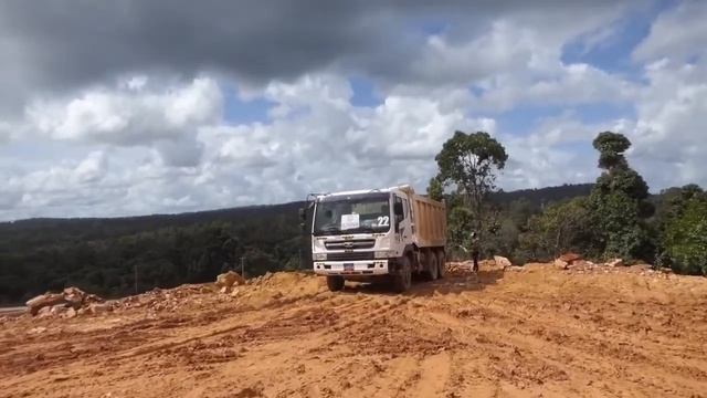 Часть 3. Бульдозер и грузовики работают на горе.