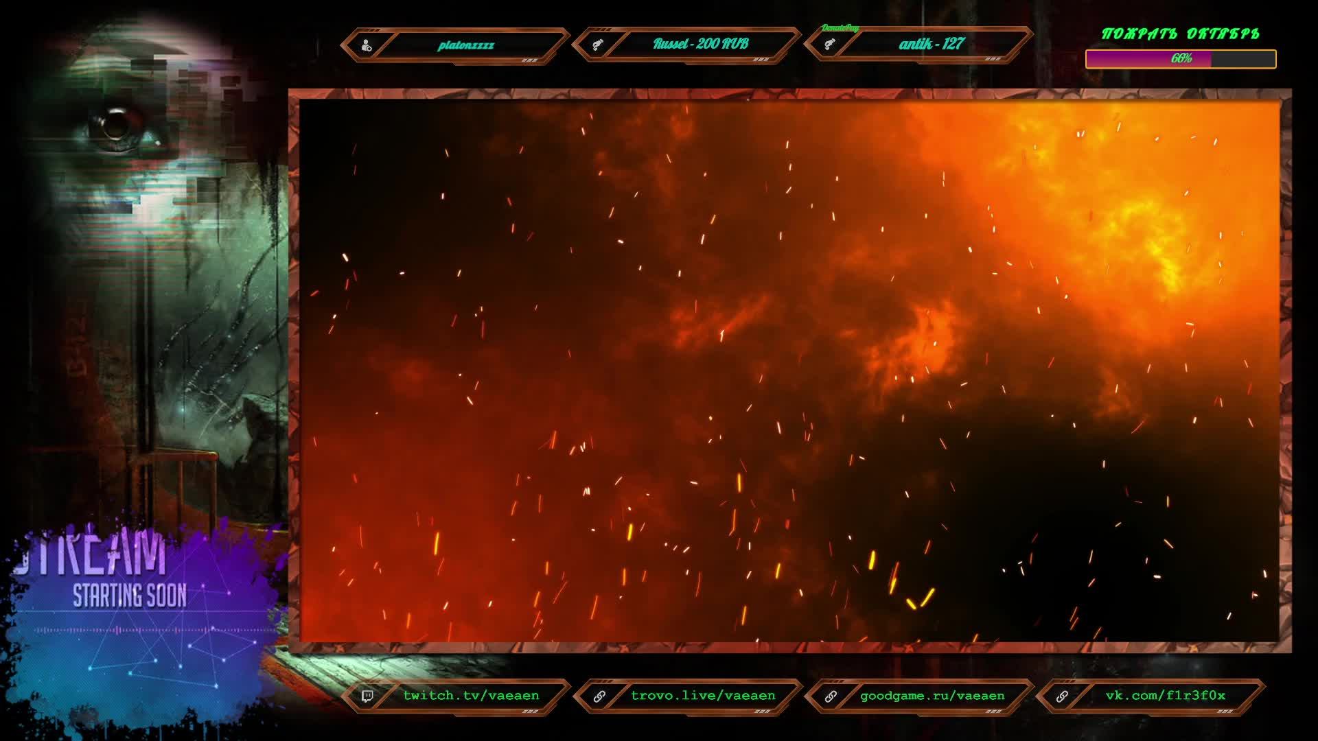 Если хотите поддержать меня как стримера - нажмите по данной ссылке https://www.donationalerts.com/r/f1r3f0x Donate for USD, EU all world - https://new.donatepay.ru/@vaeaen Во время стрима ваше сообщение появится на экране, и будет сопровождаться голосовым диктором. Поддержка на Boosty https://boosty.to/vaeaen Поддержка без комиссии: Сбер: 2202 2010 0629 1039 Тинькофф: 2200 7008 4677 0625 Основные каналы: Twitch: https://www.twitch.tv/vaeaen Trovo: https://trovo.live/Vaeaen GoodGame: https://goodgame.ru/channel/Vaeaen/ VKplay: https://vkplay.live/vaeaen Wasd: https://wasd.tv/vaeaen YouTube: https://www.youtube.com/channel/UCsl3CyRcImUYtWiCgEdvmjQ