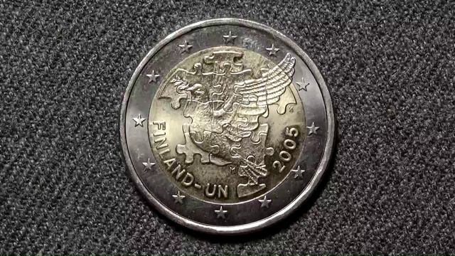 2 евро 2005 года Финляндия. 60 лет ООН и 50 лет членству Финляндии в ООН.