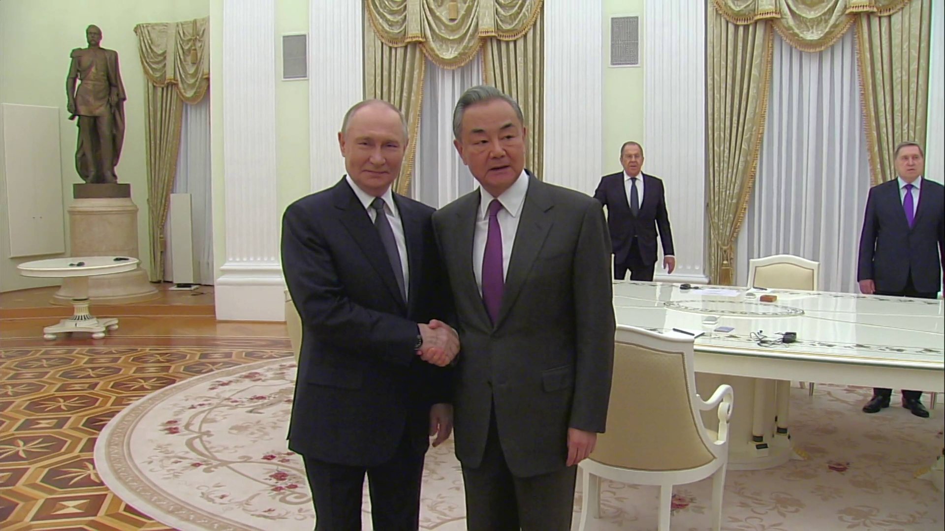 В Кремле состоялась встреча Владимира Путина с членом Политбюро Центрального комитета Коммунистической партии Китайской Народной Республики, руководителем Канцелярии Комиссии ЦК КПК по иностранным делам, Министром иностранных дел КНР Ван И. С российской стороны в переговорах приняли участие Министр иностранных дел Сергей Лавров и помощник Президента Юрий Ушаков, с китайской стороны – Чрезвычайный и Полномочный Посол КНР в РФ Чжан Ханьхуэй и помощник Министра иностранных дел Лю Бинь. * * * В.Путин: Уважаемый господин Министр! Дорогие друзья! Позвольте мне вас сердечно поприветствовать в Москве. Очень рад Вас снова видеть. И прежде чем мы начнём беседу, сразу же хочу Вас попросить передать дружеский привет Председателю Китайской Народной Республики, нашему хорошему другу господину Си Цзиньпину. Мы ждём его в России по случаю 80-летия Победы в Великой Отечественной войне, во Второй мировой. Мы вместе отметим этот юбилей – и победу над нацистской Германией, и победу над милитаристской Японией. Мы хотим выразить удовлетворение тем, как развиваются наши отношения, в том числе и при прямой поддержке наших министерств иностранных дел. Знаю, что у Вас большая, насыщенная программа визита. Прежде всего связана она с подготовкой приезда в Россию Председателя Китайской Народной Республики. Мы подготовим хорошую, насыщенную программу. Надеюсь, что она будет связана не только с участием в торжественных мероприятиях, но это будет ещё и отдельный визит. Председатель Китайской Народной Республики будет у нас основным гостем, и у нас будет возможность поговорить и о текущем состоянии двусторонних отношений, и обсудить наше взаимодействие на международных площадках, среди которых, конечно, прежде всего мы выделяем ООН – Совет Безопасности ООН, а также Шанхайскую организацию сотрудничества, БРИКС и ряд других площадок, на которых мы совместно и успешно работаем. Мы очень рады Вас видеть. Добро пожаловать, господин Министр. Ван И (как переведено): Уважаемый Президент Путин! Спасибо Вам за то, что нашли время для встречи. Прежде всего позвольте передать Вам самый тёплый привет от вашего давнего друга Председателя Си Цзиньпина. С начала этого года Председатель с Вами поддерживает плотные контакты. Под вашим руководством развиваются двусторонние отношения, планомерно продвигается многогранное сотрудничество, углубляется международное взаимодействие между нашими странами. Благодаря личному вниманию, усилиям наших лидеров постоянно укрепляется политическое взаимодоверие, уплотняются стратегические координации, углубляется практическое сотрудничество, гарантируется великое дело национальных возрождений наших стран, защищаются наши общие интересы в актуальных международных региональных делах. Сотрудничество между Китаем и Россией никогда не нацелено против третьих сторон и не поддаётся помехам извне. Мы не будем топтаться на месте по развитию двусторонних отношений, перед нами – самая широкая перспектива. Наша дружба носит не конъюнктурный характер, а долгосрочный характер. Вы правильно отметили: в этом году исполняется 80 лет Великой Победы в антифашистской войне, 80 лет основания ООН. 80 лет назад в Европе, Азии, на главном фронте китайский и советский народ отважно воевали, понесли тяжёлые национальные потери и разгромили мили