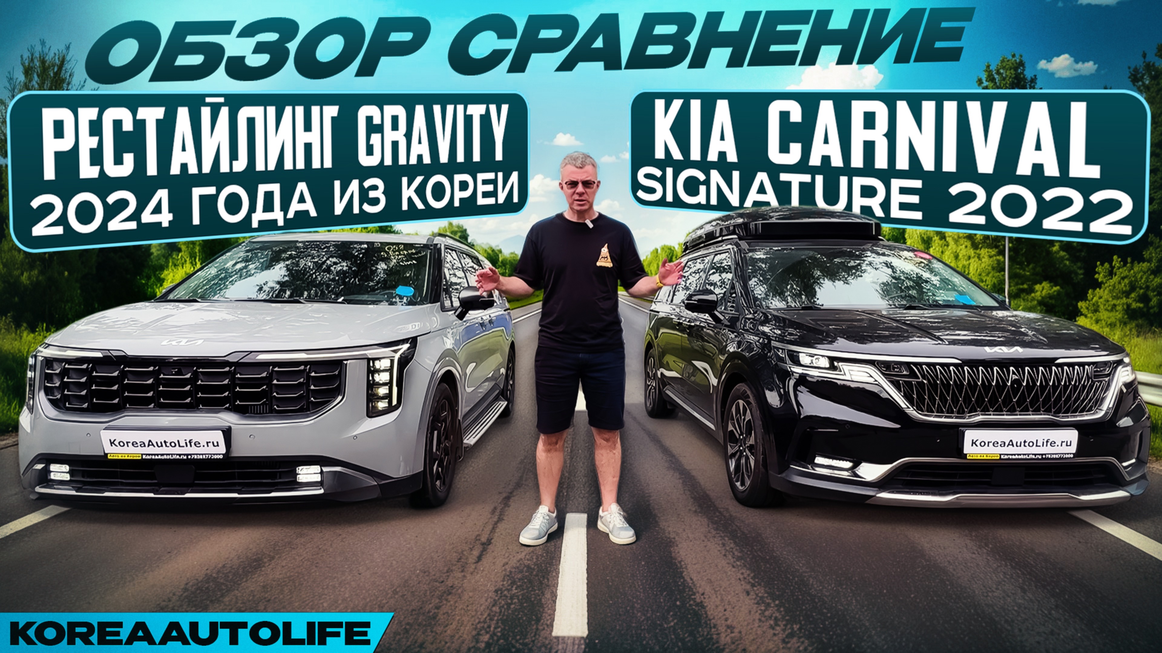 Обзор сравнение KIA Carnival Signature 2022 и рестайлинг Gravity 2024 года из Кореи
