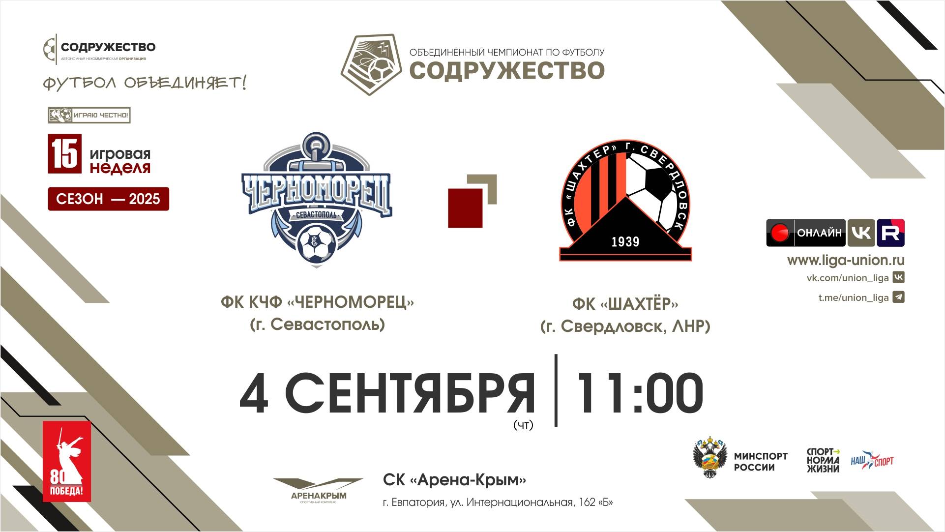 15 неделя (2025) | ФК КЧФ "Черноморец" (Севастополь) - ФК "Шахтёр" (Свердловск, ЛНР) | 04.09.2025