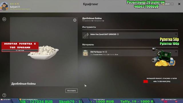 Поддержка донатом https://new.donatepay.ru/@1032463 Альтернативный донат https://www.donationalerts.com/r/kalyamba11 5536913964533059 карта Тинькоф Если стрим лагает,смотри стрим на трово https://trovo.live/s/Kalyamba_na_Ribalke Мой ВК - https://vk.com/kalyantv НИК в игре kalyan11 НАШ ДИСКОРД СЕРВЕР https://discord.gg/3ZeEDGs5h6 Заказ водоема на 1 час - 500р ( весь стрим 2500р ) Модерка на канале 1300р ( каждая следующая на 100р больше) ✅Призы в рулетке "ЗОЛОТАЯ" 500р ✔ ЗОЛОТО ✔ ПРЕМ ✔ КАТУШКИ РАПТОР 40, ВЕНГИ, ТАЙГА, СИЛЬВЕР 80, И другие ✔ ПАЛКИ ПИЛКЕРНАЯ, ДОНКА МОРСКИЕ, ✔ РОД ПОД, СТУЛЬЯ ✅Призы в рулетке СТАНДАРТ : 100р ✔ катушкИ РАПТОР 40, ВЕНГИ, ТАЙГА, СИЛЬВЕР 80, И другие ✔ катушки 60 для медного ( ЭВИИ, НАТОРЫ, ГОЛДА, и тд) ✔ ПИЛКЕРНОЕ УДИЛИЩЕ КОРОЛЕВА ОКЕАНА ✔ Морское Донное удилище ✔ прем ( 3, 7, 30 дней) ✔ золото ( 1, 3, 5, 10, 20 ,50) ✔ билет на море ( 1, 3, 5 дней) ✔ голд наживка и др. ✅Призы в рулетке "СТАРТОВАЯ" 50р ✔ катушка Венга ✔ катушка "silver80" ✔ катушка "БЕЛЫЙ КАЛИБР" ✔ катушка "Черный калибр" ✔ катушка "Протон" ✔ катушка "Нарга 6000" ✔ Набор Фидерист и спинингист ✔ Карповик Фортуна ✔ фидерные удилища ✔ прем, золото, алкашка, наживки и тд P.s Рулетка это не казино, а награда за поддержку стримера. Вечный ТОП ПОДДЕРЖКИ (10.06.2025) 1. Леха сварной 214 572 2. Dimon_pokemonchik 127 034 3. Skreb79 103 061 4. Interceptor 96 230 5. FishRus86 82 500