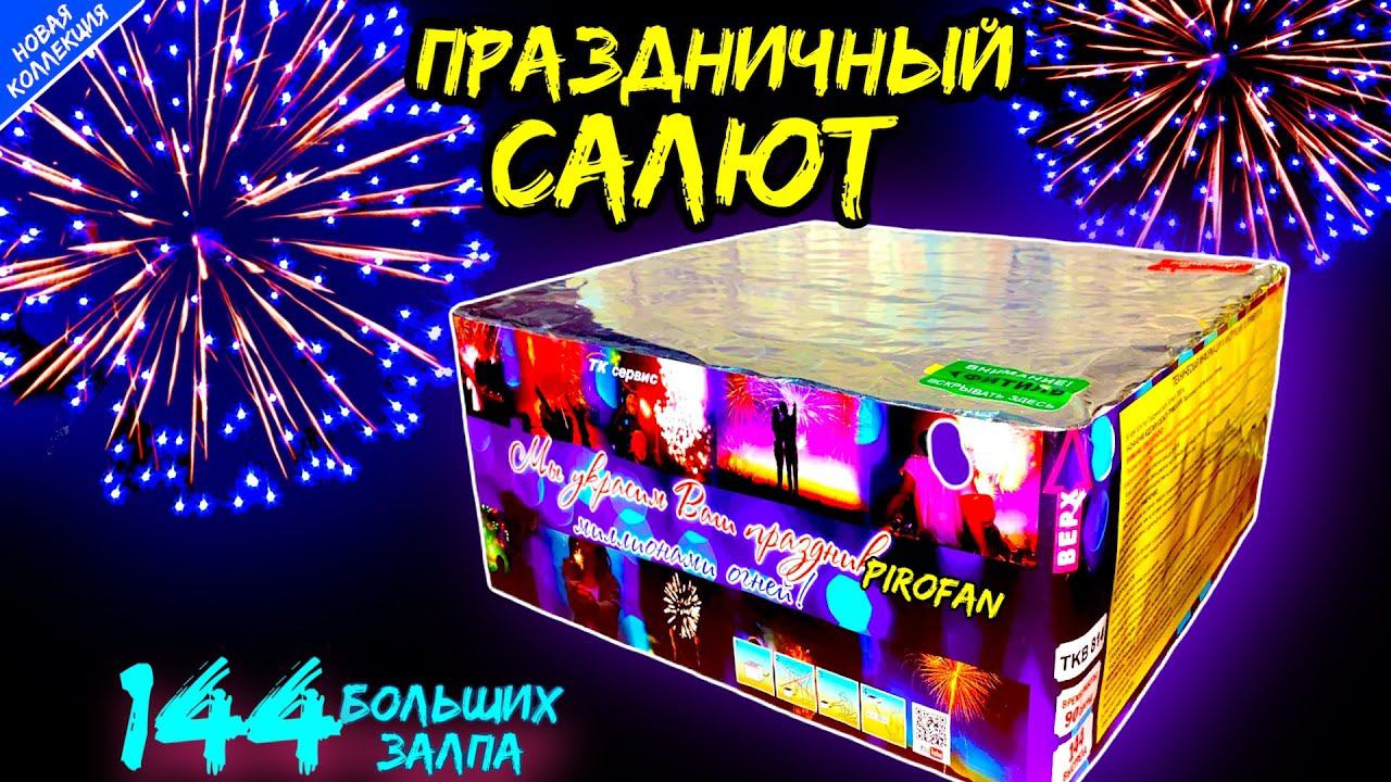 Салют - фейерверк "Праздничный Залп" - Арт.: Tkb814 - 144 залпа больших - Калибр: 25 мм = 1" дюйм - Время действия: 60 секунд - Высота выстрела: 25 - 30 метров - Срок годности: до 2027 года - Гарантия и сертификат от PiroFan