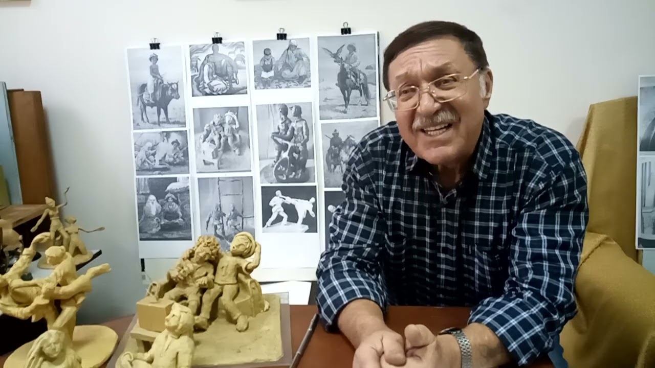Учитель объявляет для 4 класса новую, итоговую экзаменационную работу по скульптуре: многофигурная композиция на свободную тему с ярко выраженным жанровым содержанием. Обсуждается, что «свободная тема» может быть как сложной, так и облегчать задачу, поскольку даёт возможность каждому выразить собственную мысль и то, что он хочет отразить в своей работе. При этом педагог отдельно высказывает пожелание: чтобы кто‑то из учеников выбрал бытовую тему и показал быт Казахстана — от давних времён до сегодняшнего дня, включая работу людей, отдых, праздники, спорт и даже жизнь школы. Демонстрируются подготовленные материалы и примеры: работы казахстанских художников и учеников, которые можно использовать как ориентир при создании композиции. Уточняется, что в круглой скульптуре должно быть 2–3 фигуры, предстоят этапы изготовления каркаса и лепки многофигурной сцены, а ученикам желают творческих успехов в завершении курса скульптуры в этой школе. Автор - художник Гончаров Николай Васильевич (1944-2025)