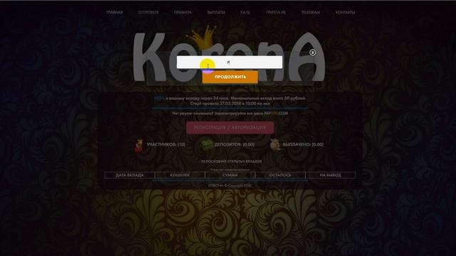 АДМИНА КОТОРОГО ПОМНИМ С ХОРОШЕЙ СТОРОНЫ!!! РЕГИСТРАЦИЯ: https://korona-website.ru/?ref=12 ПОДНИМАЕМ БЫСТРО ПРОФИТ ИНВЕСТИРУЕМ В ХАЙП ПРОЕКТЫ , А ТАК ЖЕ В ДОЛГОСРОЧНЫЕ ИНВЕСТИЦИИ Стабильный заработок всегда хорошо! Чем больше вы вкладываете в свой бизнес, тем больше вы получаете доход с него! Благодаря стратегии которую предлагаю вам я, вы начнете открывать свой стабильный заработок уже завтра! Сайты с которыми работаю стабильно! Регистрация: StartCom : https://StartCom.pro/?ref=Stasyn25 Payeer регистрация: https://payeer.com/?partner=5845498 Я VK : https://m.vk.com/solovei255 Мой мониторинг vk : http://m.vk.com/public161325132 Мое ДУ vk: http://m.vk.com/club163125456 УДАЧНОГО ПРОФИТА И СТАБИЛЬНОГО ЗАРАБОТКА ВСЕМ!!!