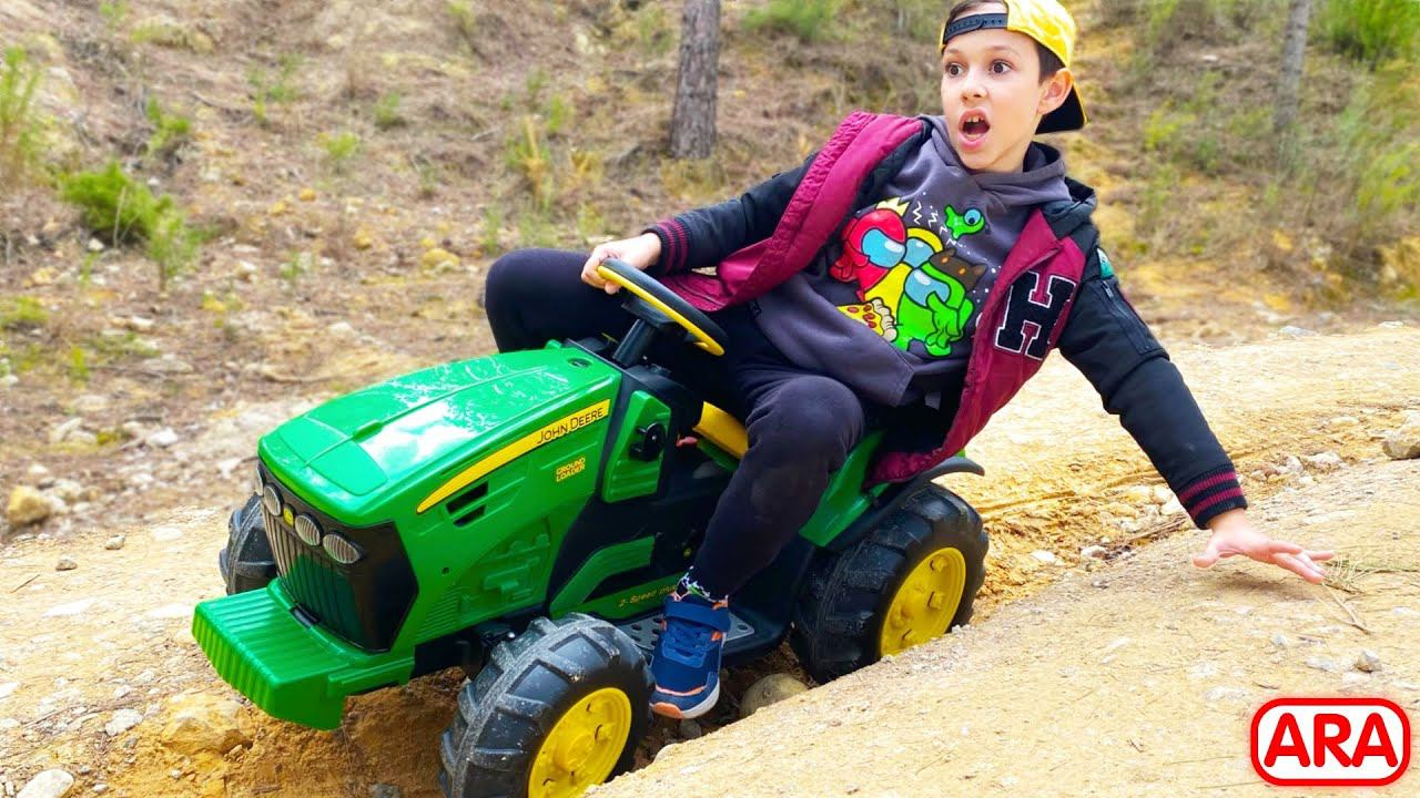 أرتيم، يساعد على سحب جرار الأطفال من الطين، ويركب الطفل على جرار صغير Artem, helps pull the kids tractor out of the mud Kid ride on mini Tractor Kids Videos