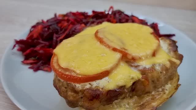 Здравствуйте, уважаемые подписчики и гости моего канала! Простое и вкусное блюдо из капусты с мясом понравится всей вашей семье! А салатный гарнир сделает его просто фантастическим. Главное - готовить с удовольствием и любовью! ✅Ингредиенты: 1 свекла, отварить; 2 небольших кочана капусты; соль, перец; Обжариваем с двух сторон на растительном масле; 6 мясных стейков; соль, перец; обжаривать по 3-5 минут с каждой стороны до румяной корочки; 2 помидора; 2 столовые ложки сметаны; 1 столовая ложка майонеза; соль, перец по вкусу; выпекать 20 минут при 190-200 °С; 130 грамм сыра; выпекать еще 10 минут; 1 огурец; 1 морковь; вареная свекла; 1/2 синего лука; небольшой пучок укропа; соль перец; немного растительного масла; небольшой пучок укропа; Спасибо за просмотр, комментарий и ЛАЙК! Спасибо что, смотрите👀 наши ролики! Если Вам не сложно, подпишитесь🔊 на наш канал, нам будет приятно! Если Вам понравился рецепт, поставьте 💘,сделайте репост;) Для развития канала,поддержите нас пожалуйста🙏 небольшой суммой в руб.💲. Вам мелочь, а нам приятно.🌹