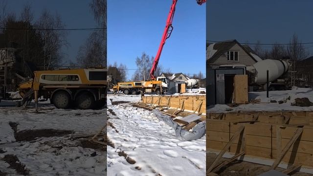заливае бетон с бетононасосом