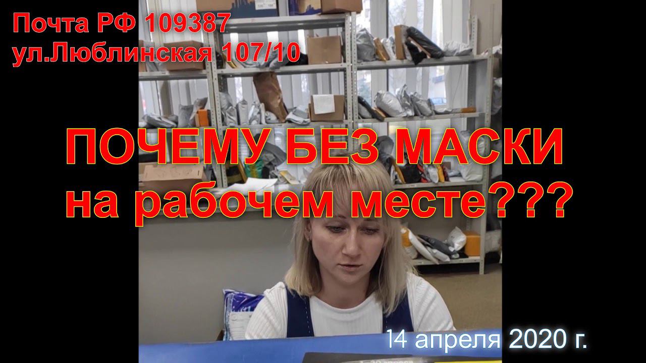 14 апреля 2020 г., Почта России 109387 ул.Люблинская 107/10 - люди стоят на улице под дождём в ожидании, когда пустят на почту... при этом в помещении находятся только два клиента... Сотрудники почты без масок... И это в тот момент, когда власть усиливает меры борьбы против вируса COVID-19...