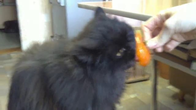 кошка ест хурму