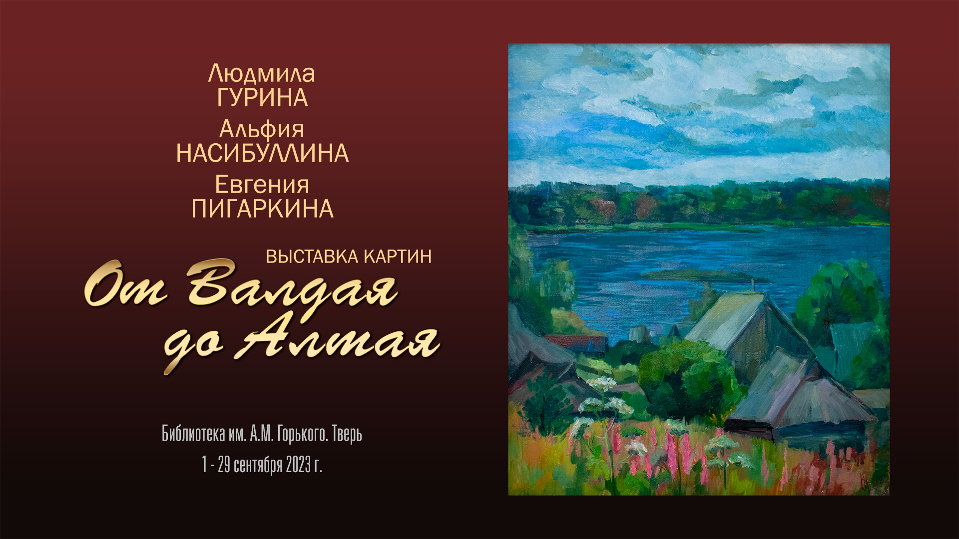 Выставка живописи «ОТ ВАЛДАЯ ДО АЛТАЯ». Людмила Гурина, Альфия Насибуллина, Евгения Пигаркина.