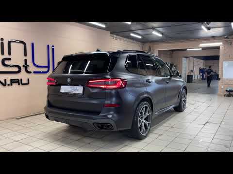 Оклейка кузова автомобиля BMW X5 вместе с крышей матовой полиуретановой плёнкой и покраска элементов