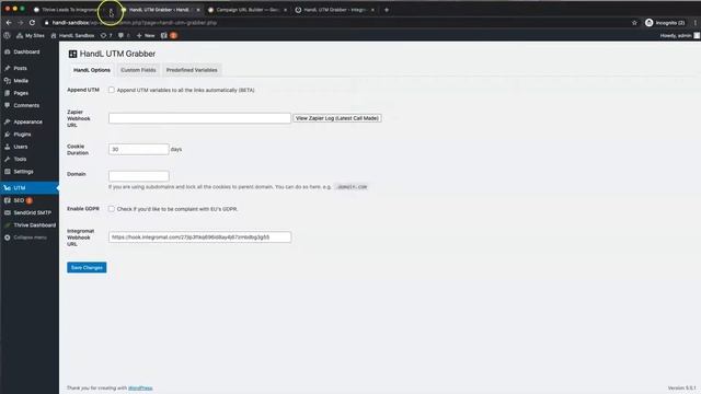 UTM Tracking Thrive Leads to Integromat with HandL UTM Grabber/Tracker for WordPress website