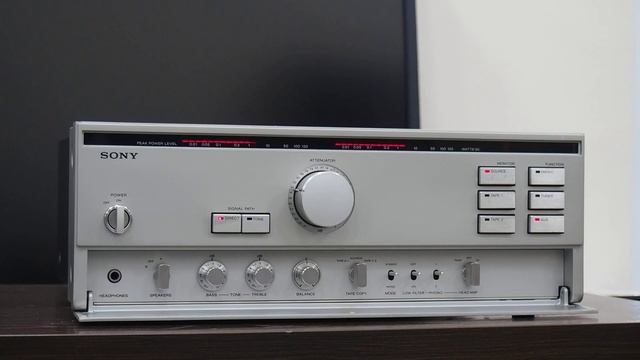 Усилитель Сони. Модель из самых высших. Открытое, обволакивающее своей ясностью звуков звучание, великолепный дизайн. Качество изготовления ручек, переключателей, кнопок напоминает изделия фирмы NAGRA. Пользоваться этим усилителем огромное удовольствие, удовольствие как эстетическое, так и от качества его звучания, приятное управление, регулировки. Очень хороший, высококачественный усилитель, с замечательным звучанием, крайне удивляет как удалось добиться столь хорошего звука используя импульсное питание (импульсное питание - фишка этого усилителя). Очень красиво смотрятся светодиодные, с длинной шкалой, индикаторы выходной мощности. Крайне удачная модель. トータルダイナミックディストーションの低減というテーマのもとに開発されたプリメインアンプ。 シンプル&ストレート思想を実現するため、ストレート伝送、プリパワーセパレート構造を採用しており、入出力端子の配線の最短化、信号の流れに沿った自然な部品配置、信号の交錯を避けるなどを徹底しています。 TA-F80では、プリアンプ部をフロントパネル部に配してボリュームスイッチ類を直付けし、無駄な線材を追放してシールド板で遮蔽されたパワーアンプに伝送しています。また、パワーアンプ部では難問であったパワートランジスタの設置場所をヒートパイプによって任意に決める事が可能となり、信号の流れの上で理想的な位置に配しています。 冷却装置にはヒートパイプ構造を採用しています。 ヒートパイプは減圧した銅パイプの中に特殊な液体を封入し、気化⇔液化を連続的に行うことで、パイプの端から端へ、瞬間的に熱を伝えています。このため熱伝導率は銅や銀の同径の金属棒の数百倍を実現しています。 このヒートパイプ構造によりパワートランジスターの配置の自由度を高め、線材による引き回しを回避しています。 パワートランジスタには過渡混変調歪(TIM歪)を低減したHi-fTトランジスタを採用しています。 このトランジスタはソニーの半導体工学を生かして開発されたもので、高域特性の良い小電力トランジスタを無限大個集積したようなもので、大電力にも充分な安全動作を実現しています。 特性的には遮断周波数は従来の4MHzに対して20MHz~60MHz以上と著しい改善をしており、高域応答が極めて速くなっています。 電源部にはパルス電源を採用しています。 パルス電源の整流方式は、AC100Vをダイレクト整流し、パワーオシレーターで20kHzのパルスに変換、高周波トランスで高圧した後再整流するという構造になっています。高周波トランスで高圧するため効率が極めて高く、優れたレギュレーション特性を容易に得ることが出来ます。また、正弦波整流を異なり整流しただけでほぼ直流状態が得られるため、平滑も容易で、脈流成分もほぼゼロとなっています。 さらに、AC100Vをダイレクト整流するため交流ハム発生源が事実上なくなり、この点でも大きな効果があります。 パワーアンプにハイゲインDCアンプを採用したことでフラットアンプの省略を実現しています。 これにより「Direct」状態では、Tuner、Aux、Tape各入力からスピーカーout間でDC伝送を可能にしています。また、MCカートリッジ再生時でも、ヘッドアンプ→イコライザー、パワーアンプと、必要最小限の回路しか通過せず、音質の劣化を少なくしています。 MCヘッドアンプ部は、超LECトランジスタによる差動増幅とICを組合わせた回路により低雑音化を図っています。 3Ω⇔40Ωインピーダンスセレクターを搭載しています。 0.008W~130Wを直読できる20ステップのピークパワーインジケーターを搭載しています。 Lowフィルターを搭載しています。 型式 ステレオプリメインアンプ 回路方式 プリアンプ部:低雑音MC用ヘッドアンプ、NF型イコライザーアンプ パワーアンプ部:全段直結ピュアコンプリメンタリーSEPP DCパワーアンプ 電源部:パルス電源(PPS) -パワーアンプ部- 実効出力(両ch駆動) 90W+90W(8Ω、歪率0.007%、20Hz~20kHz) 出力帯域幅 5Hz~30kHz(IHF、歪率0.007%、8Ω、45W) 高調波歪率(20Hz~20kHz) 0.007%(実効出力時) 混変調歪率 0.007%(実効出力時、60Hz:7kHz=4:1) 残留雑音(Aネットワーク) 100μV(8Ω) ダンピングファクター 100(8Ω、1kHz) 適合スピーカーインピーダンス 8Ω~16Ω -プリアンプ部- 入力感度/インピーダンス Phono1、2 MM:2.5mV/50kΩ Phono1、2 MC:0.125mV/33Ω、100Ω Tuner、Aux、Tape1、2:150mV/50kΩ SN比(Aネットワーク) Phono1、2 MM:88dB Phono1、2 MC:78dB Tuner、Aux、Tape1、2:105dB 出力レベル/インピーダンス Rec out1、2:150mV(最大出力20.0V)/4.7kΩ Phono最大許容入力 Phono1、2 MM:300mV Phono1、2 MC:15mV 周波数特性 Phono1、2:RIAA偏差 ±0.2dB Tuner、Aux、Tape1、2:DC~100kHz +0 -1dB トーンコントロール Bass:25Hz ±10dB(タ