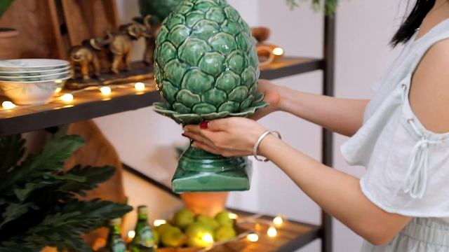 Добавьте яркий акцент в ваш интерьер с этим привлекающим взгляд элементом декора в виде артишока. Гладкая структура вместе с глянцевым покрытием и искусно вырезанными деталями без труда позволят изделию вписаться в любое пространство.