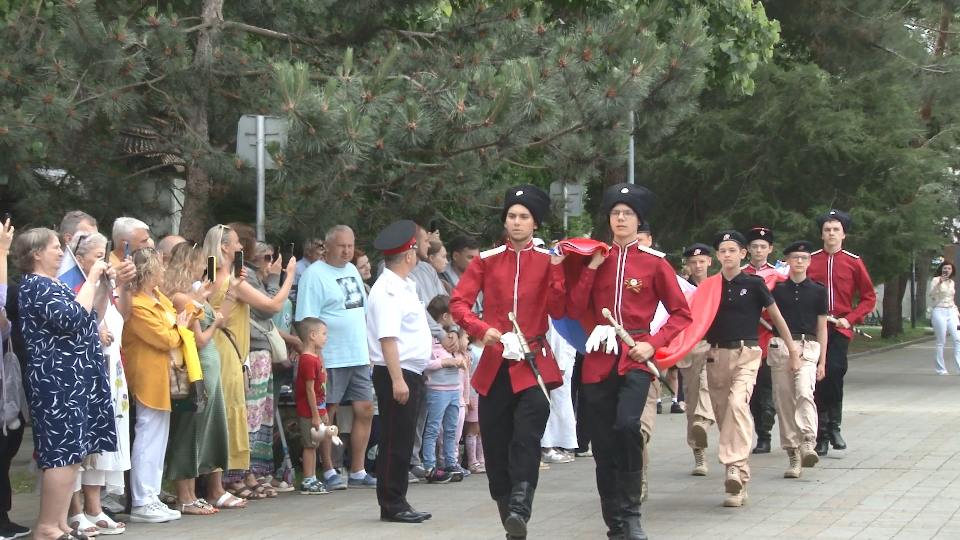 Цикл праздничных мероприятий начался в сквере, который, по решению топонимической комиссии города-курорта теперь имеет официальное название «Россия». Именно здесь расположен самый высокий на Кубани флагшток, на котором гордо реет главный символ нашей страны. Сегодня в сквере народный ансамбль казачьей песни «Зарница» исполнил государственный гимн. В торжественном мероприятии приняли участие вице-мэр Светлана Балаева и председатель Совета Леонид Красноруцкий, депутаты ЗСК Николай Морарь и Алексей Аксёнов, представители правоохранительных структур и казачества, Почетные граждане Анапы, жители и гости курорта. После, рядом с Русскими воротами был развернут большой триколор.