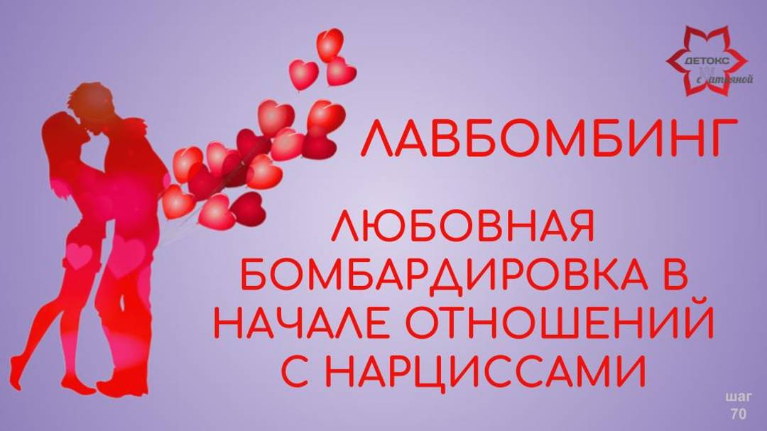 Лавбомбинг / Love Bombing или бомбардировка любовью - это то, с чего начинает свою охоту на вас токсичный партнер. Это самый верный признак того, что вы стремительно заходите в токсичные отношения и вот-вот, в скором будущем вас ждет абьюз. Как нарциссы и психопаты захватывают и поглощают вас - говорим в этом видео - сюжете. Этот сюжет будет полезен тем, кто ищет ответы на вопросы: что такое лавбомбинг, как нарцисс начинает отношения, бомбардировка любовью, как начинается абьюз, кто такой нарцисс, абьюзер, отношения с нарциссом, человек - нарцисс, женщина - нарцисс. ~~~ 📚Книга про отношения с человеком - нарциссом: "Сквозь иллюзии: путь к свободе" https://www.litres.ru/72278959/ 📚Книга для тех, кто испытал на себе абьюз и домашнее насилие: "Место под солнцем" https://www.litres.ru/71252419/ ~~~ Авторский курс "ДЕТОКС - РЕСТАРТ". Пройти быструю перезагрузку после абьюза https://clck.ru/3DyXjt ~~~ 🛜Альтернативные площадки с моими каналами: ✅ YouTube: https://youtube.com/@tatyanadetoks?si=jVtFT0iM1onWUONt ✅Яндекс Дзен: https://dzen.ru/id/62c4c1fa7286b12c3f8a9575 ✅Сообщество в ВК: https://vk.ru/club227903747 ✅ Телеграмм-канал: https://t.me/TatyanaDetoks (Психология с Татьяной) ✅ Рутюб: https://rutube.ru/channel/27064920/ Веду дневник: ~~~ Яндекс Дзен: https://dzen.ru/id/68d1ad5d6be9fa6d435c8524 ~~~ Рутюб: https://rutube.ru/channel/74086143/ ~~~ Сообщество в ВК: https://vk.ru/club234060467 ~~~ YouTube https://youtube.com/@prosev92?si=Qd0Q-QjK2hy6_mza 👉🏻Переходите и подписывайтесь, чтобы оставаться на связи! ~~~~~~~~~~~~~~~~~~~~~~~~~~~~~~ Ваша Татьяна ДеТокс