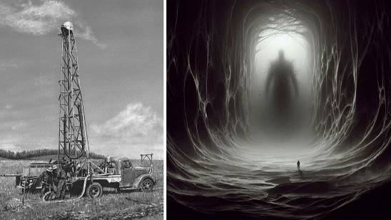 Рабочие в степи и обнаружили дверь в подземелье. 1927 год.