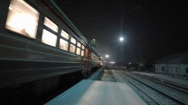 Электропоезд ЭД4М-0175 с пригородным поездом №6006 прибывает на ст. Полетаево-1