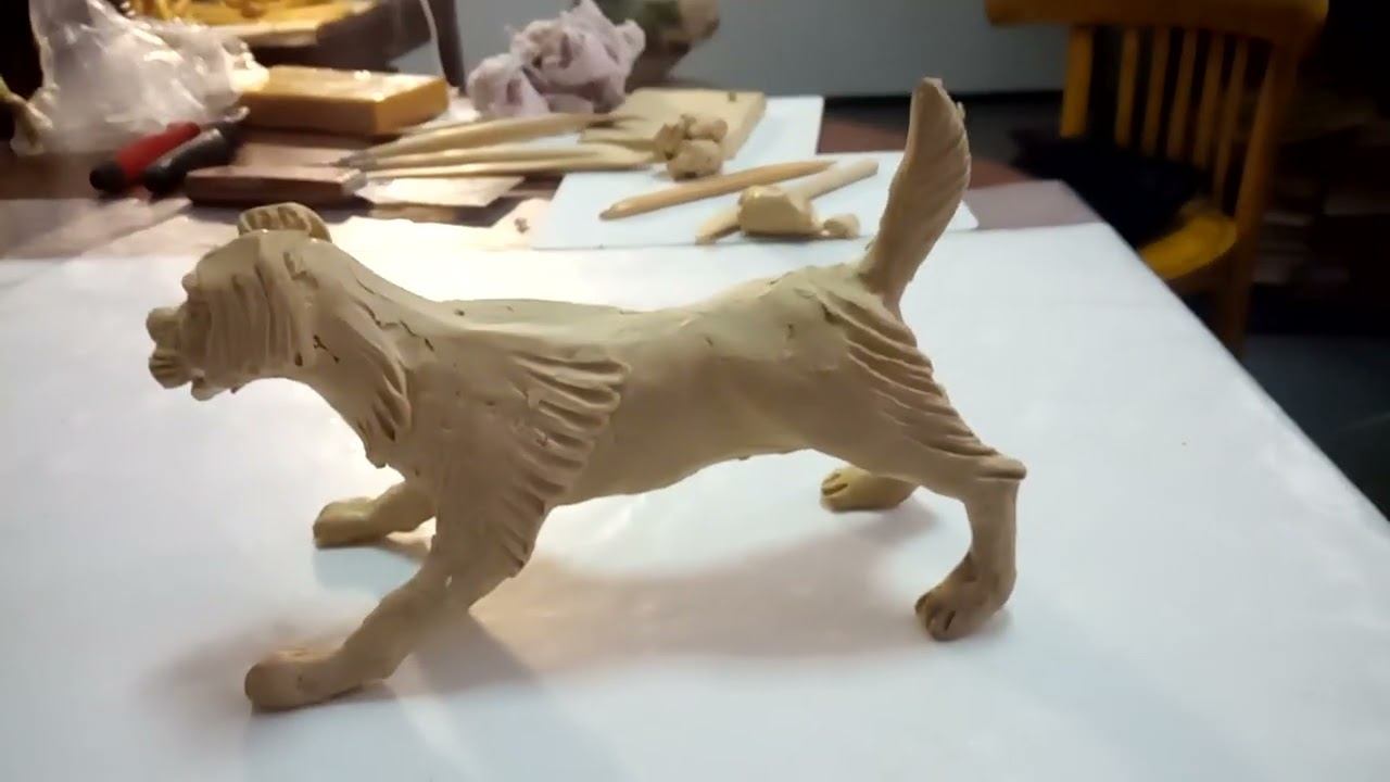 Учитель завершает демонстрацию улучшенной версии собачки из работы первого класса, показывая результат детализации и анатомической проработки для второго класса. Результат доработки Получилась выразительная собачка в динамичной позе: правильные пропорции, мощная грудная клетка, поджарый животик, расставленные лапки, поднятый хвостик. Фигурка стоит устойчиво, передает возбуждение и готовность к встрече с кошечкой. Итог урока Из детской работы первого класса создана профессиональная композиция второго класса с чистой детализацией и анатомией. Поза собачки передает характер и экспрессию — она ждет кошечку для знакомства. Ученикам поручено создать аналогичные улучшенные работы самостоятельно. Ждут творческие результаты. Автор - художник Гончаров Николай Васильевич (1944-2025)