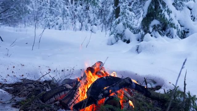 ? Музыка огня! Уютный костер в утреннем зимнем лесу ❄️