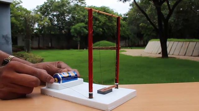 You might have seen various kinds of swings but here we will make our doll swing on an electric swing. You need a 1.5V battery, a small copper rod, some copper wire, pencils rubber base, and a strings and magnet. Make a small rubber base and put the battery at one end and magnet at the other. Clean the ends of copper rod and copper wire with sand paper. Attach the end of the copper wires to both the ends of the rod. This makes the bottom of the swing. Make the swing with pencils and wooden stick. Attach this copper rod on the swing so that it hangs just above the magnet. Connect one end of the copper wire to the battery. Leave the other end unconnected. Now our swing is ready to rock .Mount the doll on the swing. Now take the unconnected end of the wire and keep tapping it on the other end of the battery. You will see the doll starts to swing. Current passing through the copper rod creates magnetic field around it. This field interacts with strong magnet and get repelled or attracted causing the rod to get pushed. You might have to reorient the strong magnet in case you can’t get the rod to swing. If you keep the wire connected to the battery the rod will get permanently repelled and so it won’t swing. By periodically repelling the rod we make the Electric swing work. Is it not amazing? So make and play with this amazing electric swing. This work was supported by IUCAA and Tata Trust. This film was made by Ashok Rupner TATA Trust: Education is one of the key focus areas for Tata Trusts, aiming towards enabling access of quality education to the underprivileged population in India. To facilitate quality in teaching and learning of Science education through workshops, capacity building and resource creation, Tata Trusts have been supporting Muktangan Vigyan Shodhika (MVS), IUCAA's Children’s Science Centre, since inception. To know more about other initiatives of Tata Trusts, please visit www.tatatrusts.org